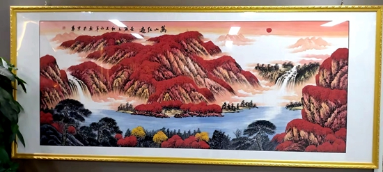 2022年12月,山水作品《千岩叠翠图》被中南海怀仁堂收藏并悬挂于会客厅常期展示。r